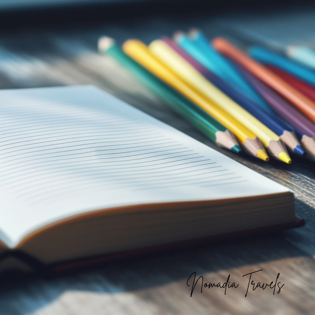 Een boek. Kleurpotloden.